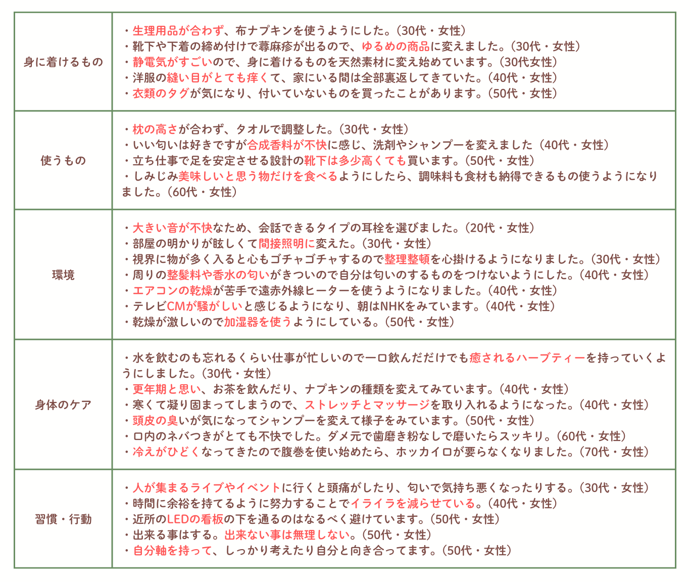 ④【不快をきっかけとした生活習慣・使用品の見直し】