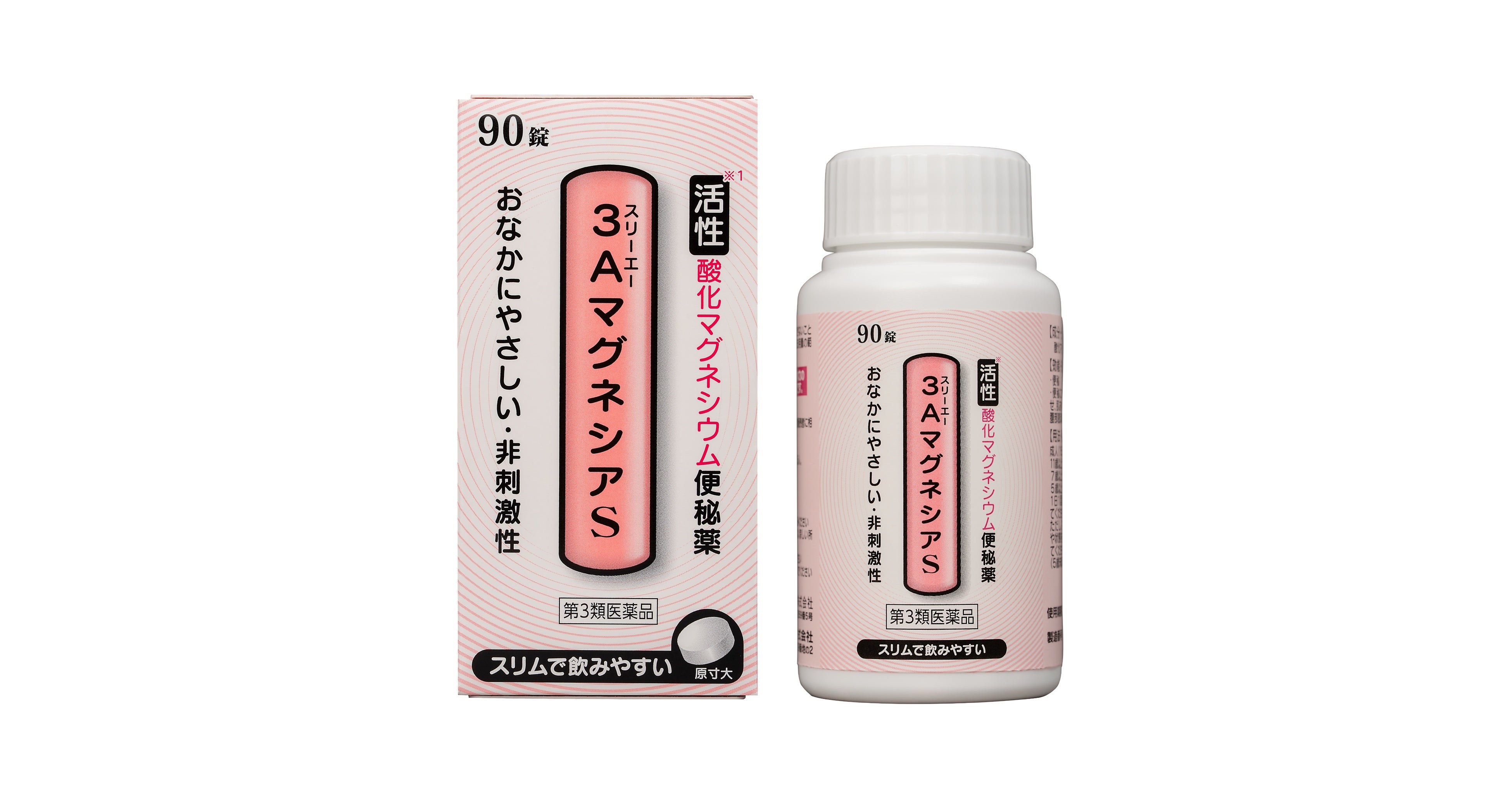 『3AマグネシアS』は、腸に水を集めて便を柔らかくする「活性酸化マグネシウム※1」を主成分とし、その特長はそのままに、錠剤のスリム化と崩壊時間を向上させました。