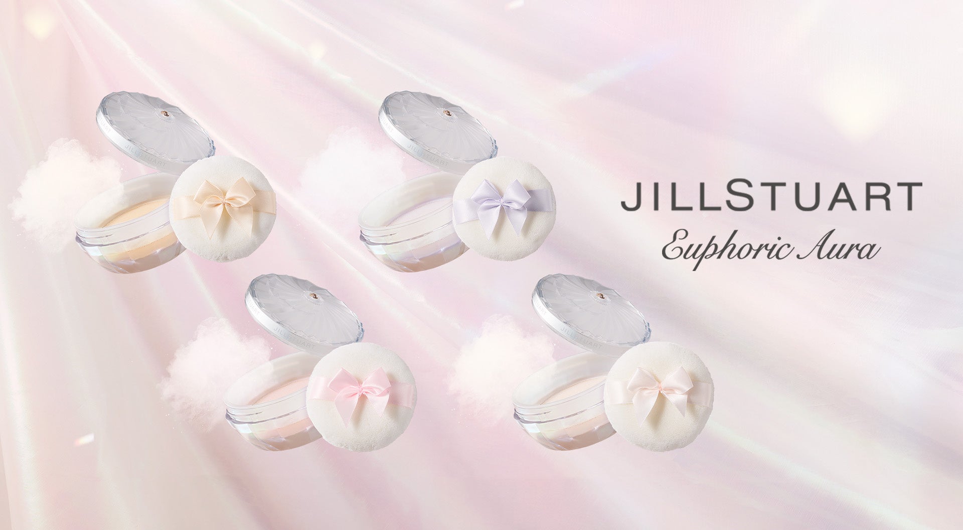 とけ込むようになじみ、透明感と幸福感に溢れるふんわりとした肌に仕上げます。ナチュラルからツヤまで、仕上がりの好みで選べる4色のラインアップです。さらに、4色のパウダーに合わせて、パフに添えたリボンの色をそれぞれ選定いたしました。