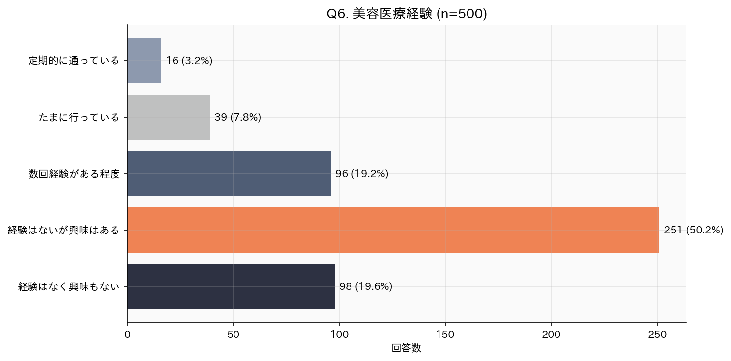美容医療経験:4割超に経験あり、「興味はある」層が最大