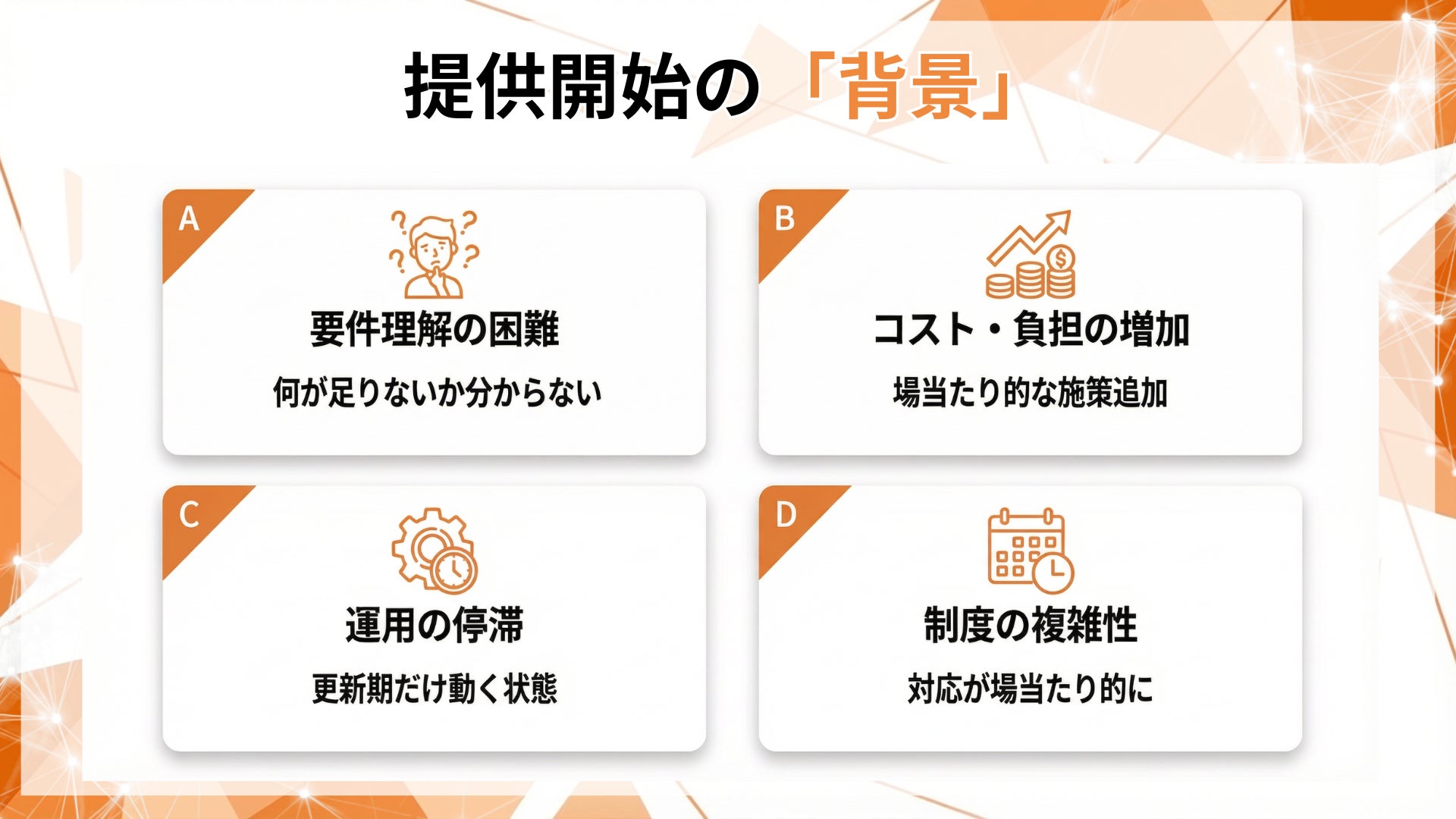 2. 申請に間に合わせるために場当たり的に施策を足し、コストと現場負担が増える