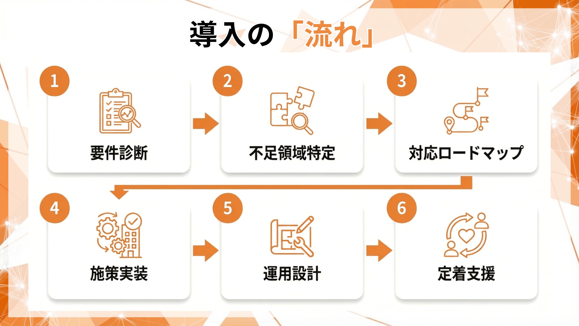 導入の流れ(要件診断から申請・定着までの実行ステップ)
