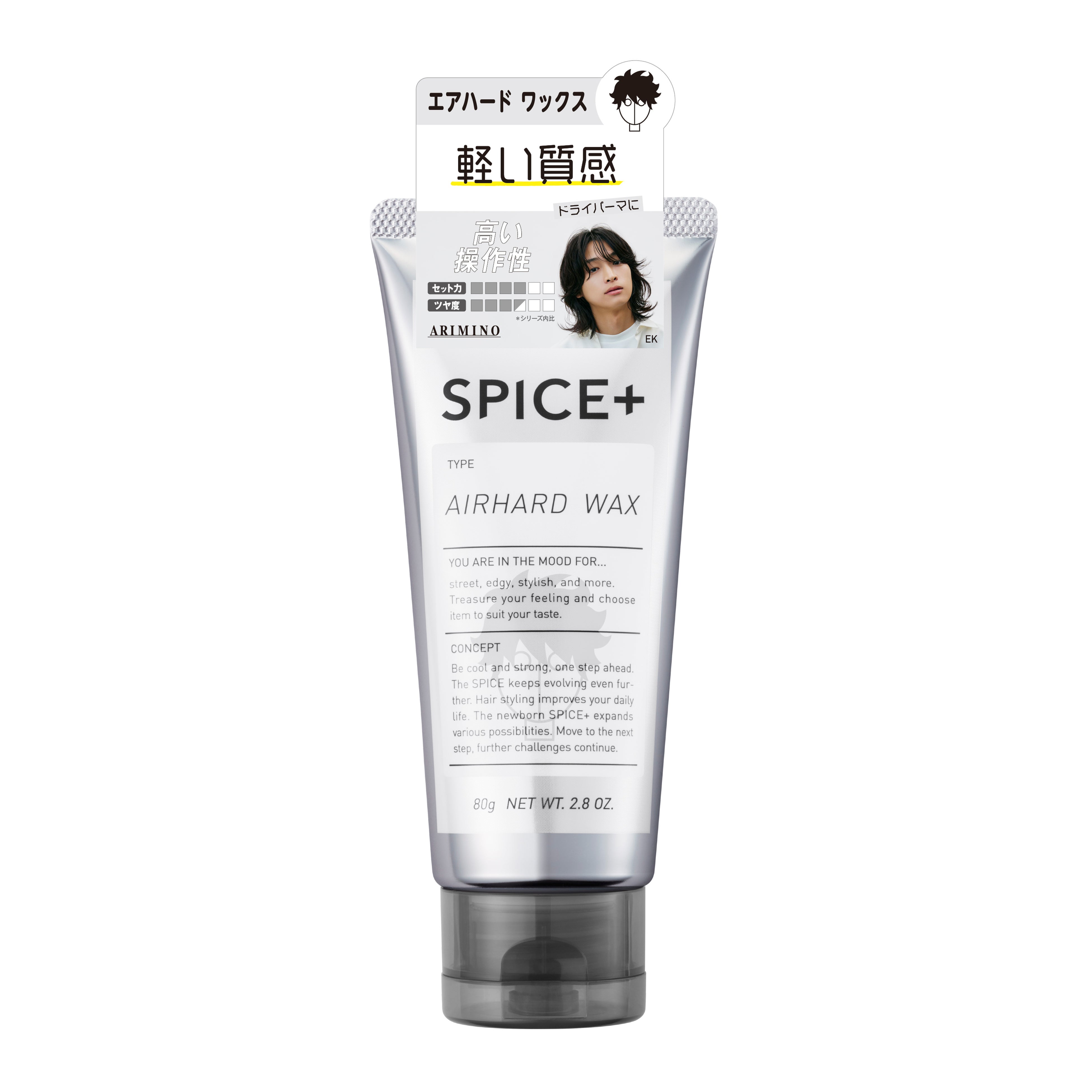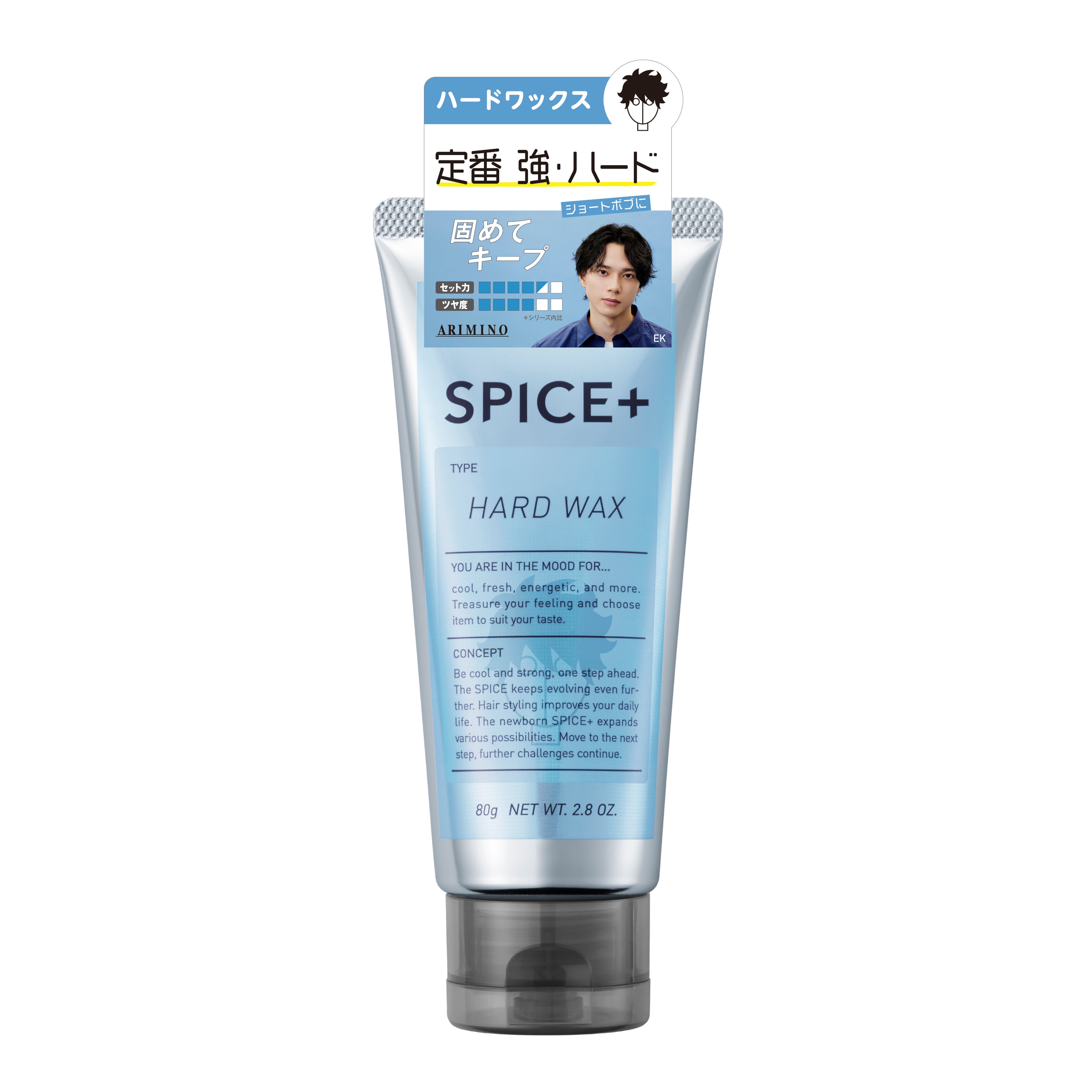 ハードなセット力と長時間キープを可能にした、アリミノの独自処方。強力セットなのに、シャンプーで落としやすいのもうれしい。