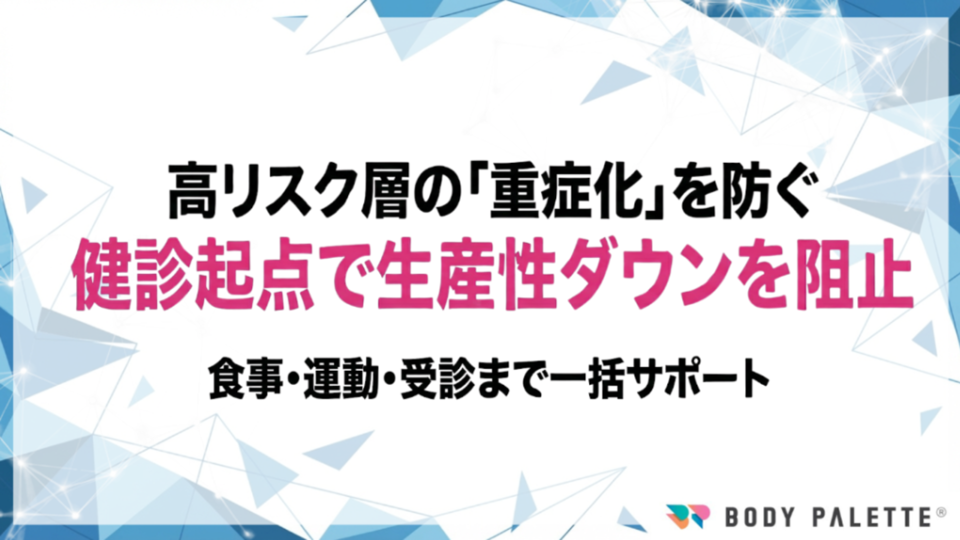 生活習慣病(糖尿病、脂質異常症、高血圧等)の予防は、医療費だけでなく、欠勤・休職の前段階で生じる生産性低下や業務遅延、安全リスクにも直結します。