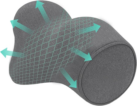 首から肩にかけて自然に沿うガイドカーブを採用。頭の重みを利用し、浮きすぎず沈みすぎない独自設計を施しており、どんな体型でもフィットするようなフォルムを再現しています。