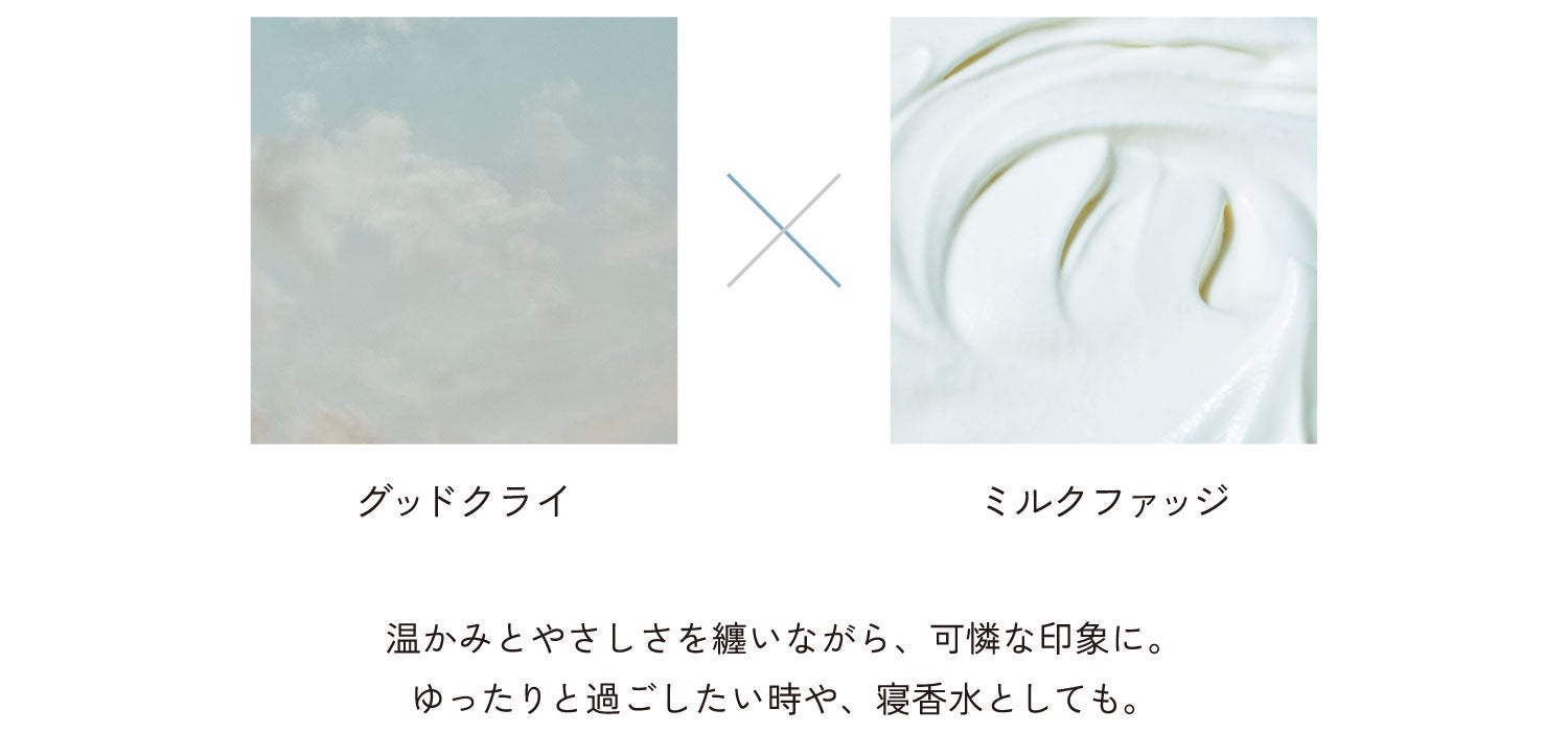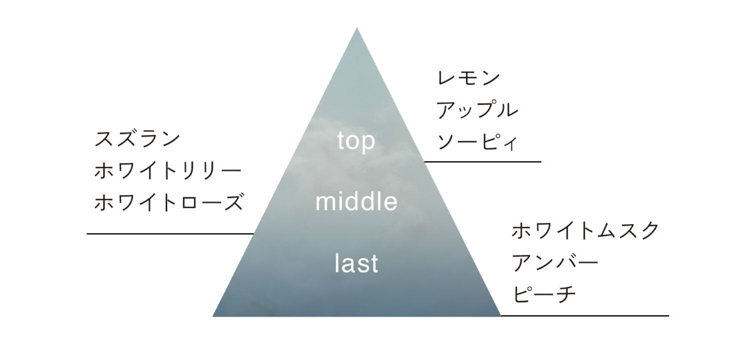 思い切り涙を流した後、徐々に心が晴れやかになっていく様を表現した、ほんのり甘くてピュアな香り。心を整えたい時や、新しい気持ちでなにかにチャレンジをしたい時、一歩踏み出すあなたにやさしく寄り添います。