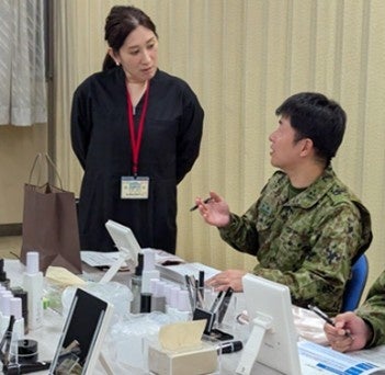 今回は、肌を酷使する環境で働く自衛官に自身の肌を知り、日々のケア習慣を持って頂くことを目指し、また美容を楽しいと感じて頂く時間を提供するため、花王BRCCがオリジナルのセミナー内容を企画。UNLICS(アンリクス)の商品を用いながら、一人ひとりの肌タイプや肌悩みに合わせたスキンケア、メイクの提案を実施しました。普段、撮影等の経験が豊富なアーティストがきめ細やかに、紫外線による影響などの肌知識やスキンケアの重要性、初めてでもわかりやすいメイクレッスンを丁寧に実施し、参加者からは身だしなみを整えることへの意欲と満足度の高い声を多く頂きました。