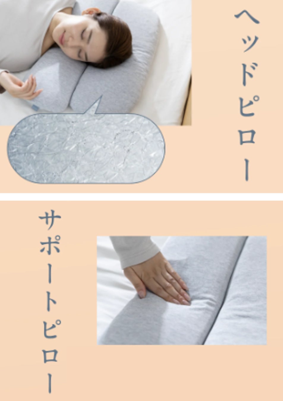 ローフラットには、頭部分(ヘッドピロー)と首部分(サポートピロー)の調整パッドが付属しています。ただ低いというだけではなく、利用者の好みに合わせて81通りの高さ調整が可能です。