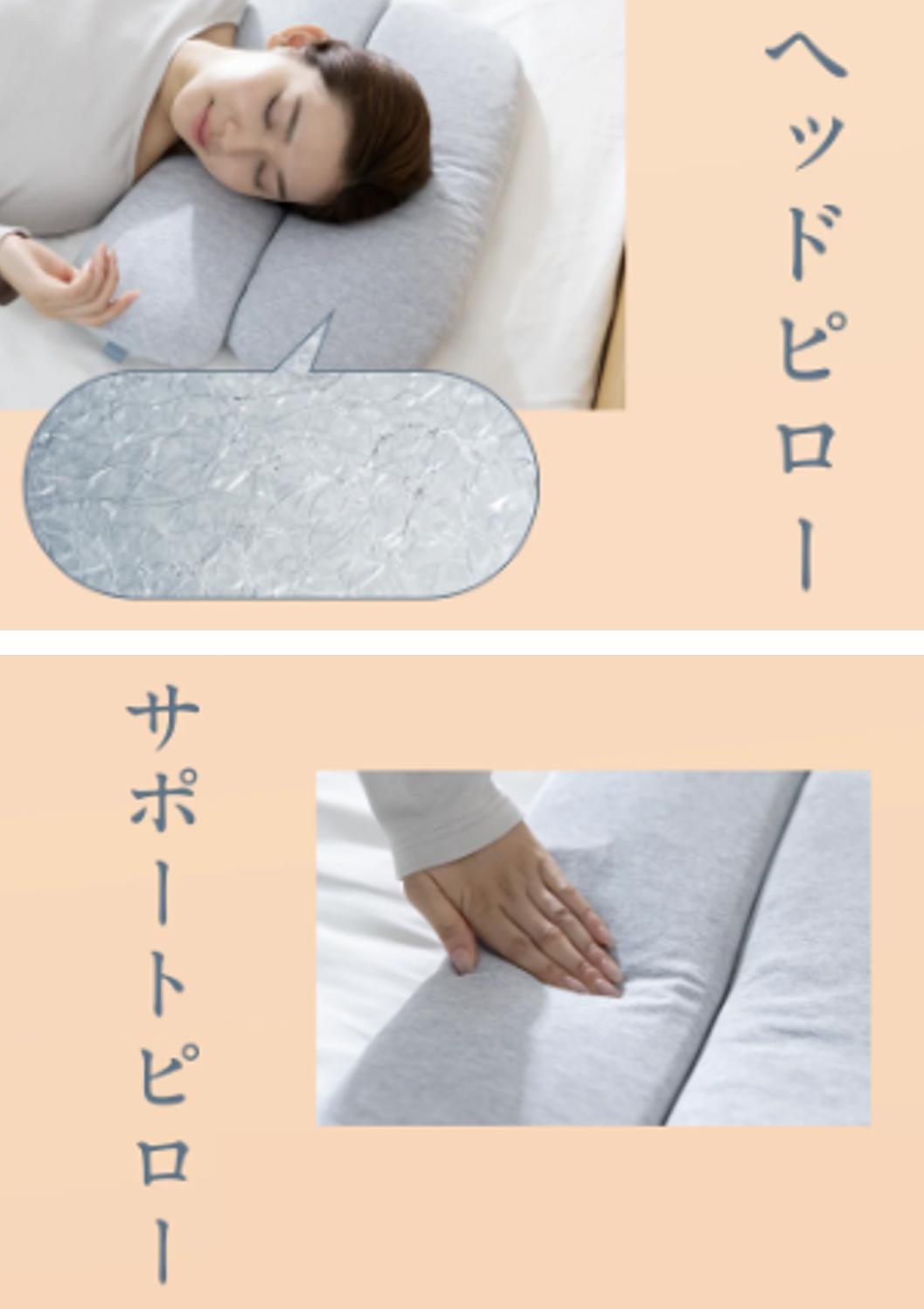 ローフラットには、頭部分(ヘッドピロー)と首部分(サポートピロー)の調整パッドが付属しています。ただ低いというだけではなく、利用者の好みに合わせて81通りの高さ調整が可能です。