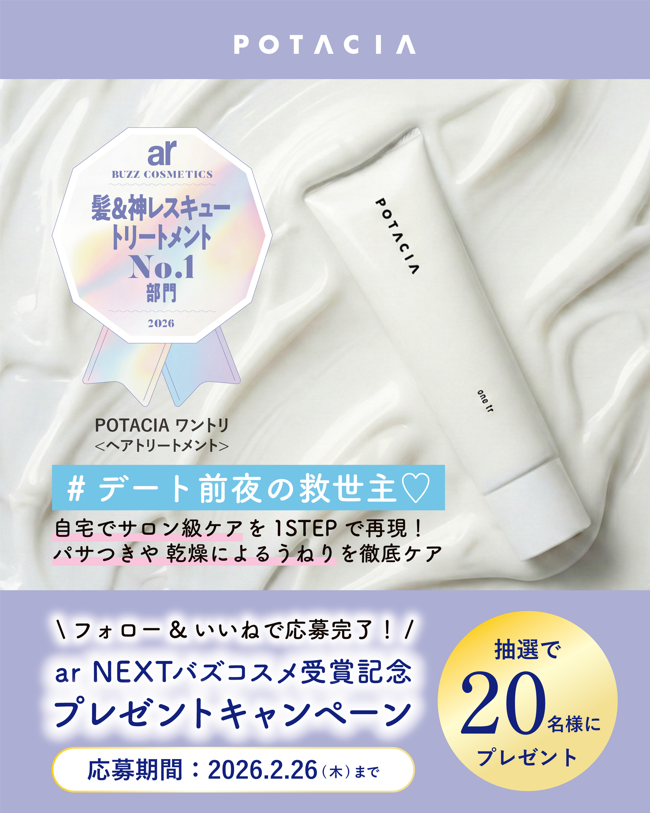 スキンケア&ヘアケアブランド<POTACIA(ポタシャ)>のトリートメント「ワントリ」が『ar』NEXTバズコスメ受賞!