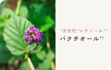 レチノール*⁵同様にエイジングケア*⁶効果がありながら、敏感肌でも使いやすい自然由来成分が肌悩みにアプローチ。