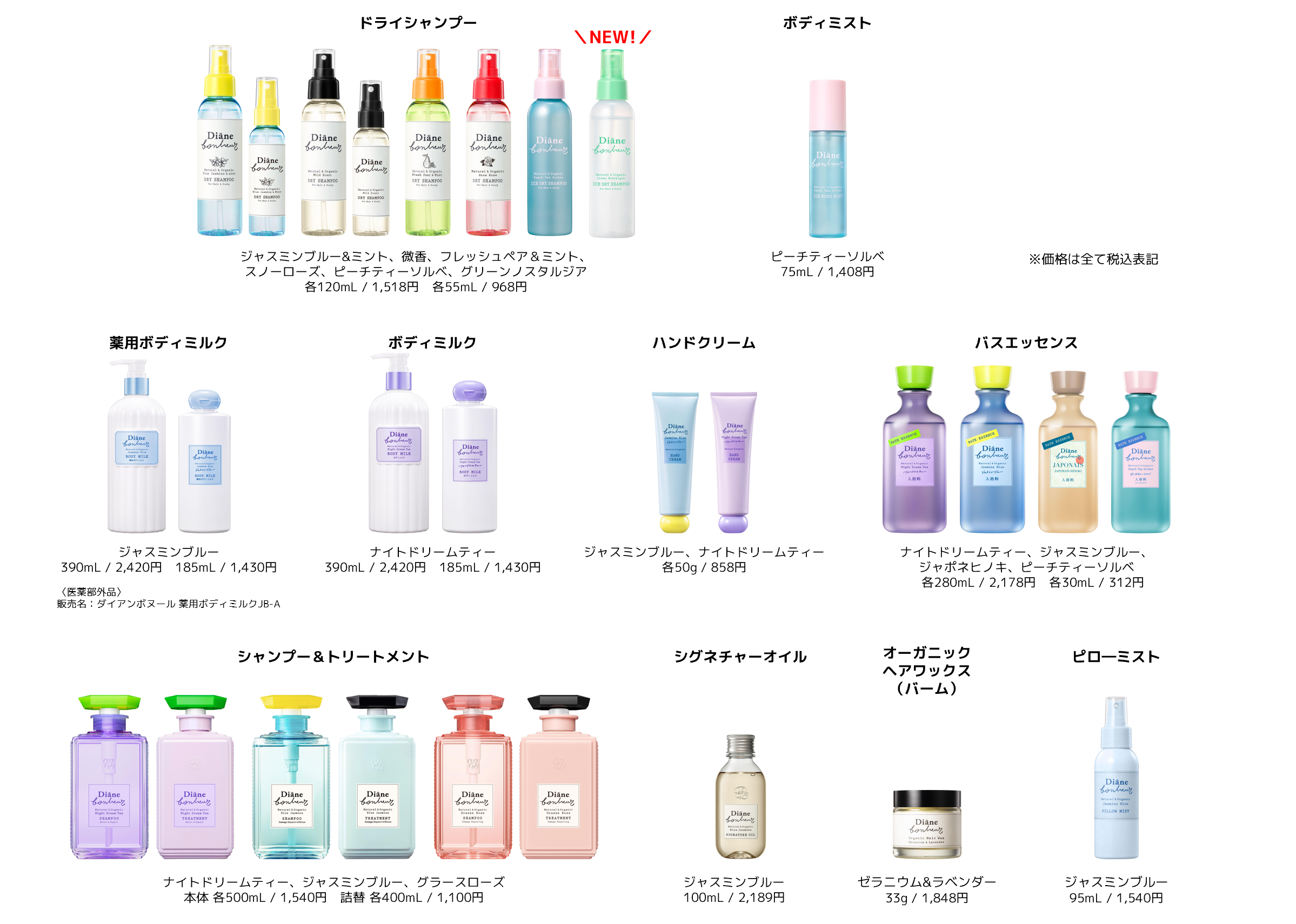 ダイアンボヌールは、「産地と作り手とユーザー、関わるすべての人に幸せを」という想いのもと、天然由来成分にこだわり、香りと心地よさを大切にしたものづくりを続けてきました。その思いを受け継いだ本製品は、日々のセルフケアにそっと寄り添いながら、春から夏にかけての季節に、香りと気分を楽しむ新しいドライシャンプー習慣を提案します。