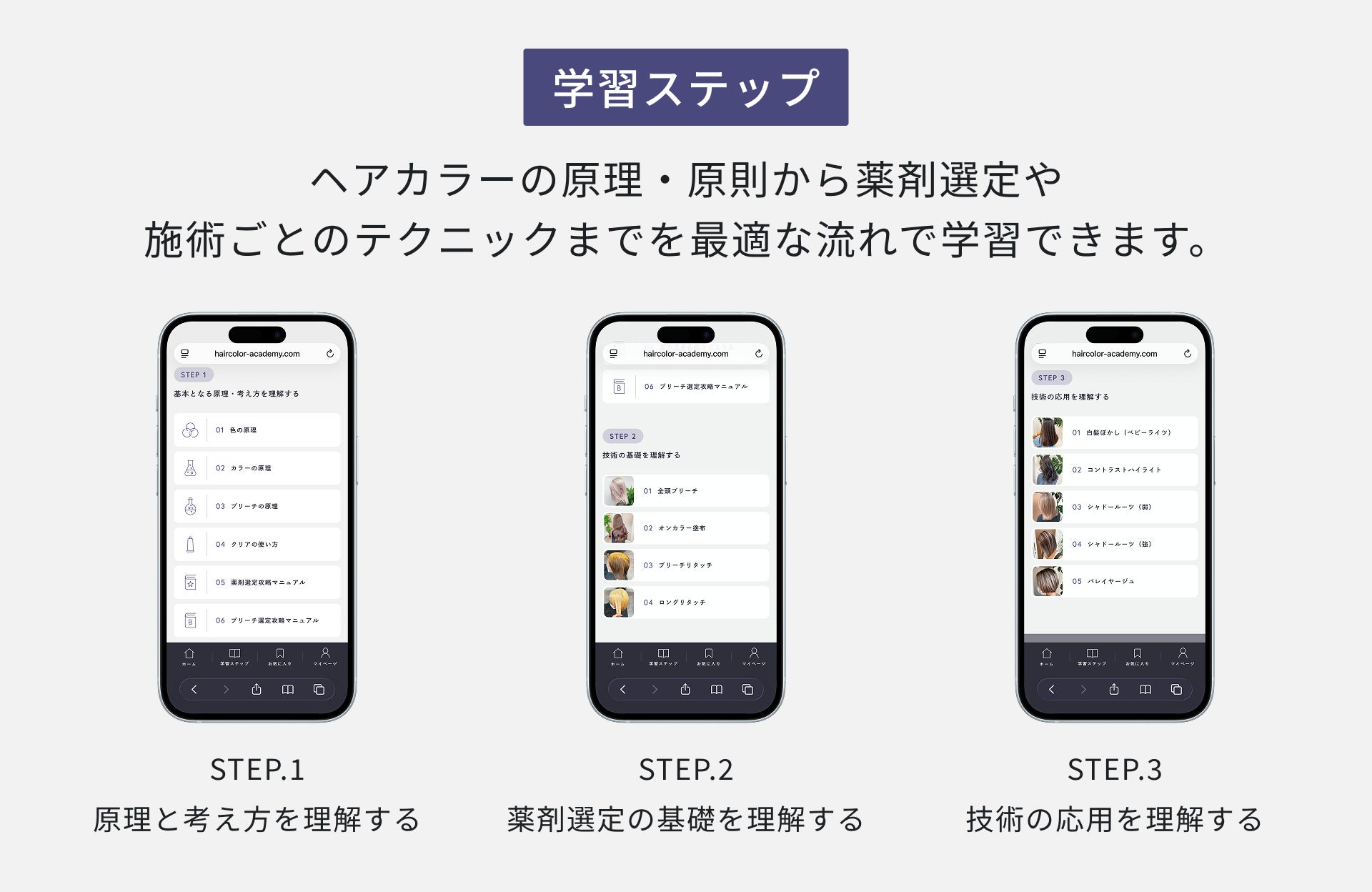 ヘアカラーに必要な知識と技術が1から身につく学習プロセス