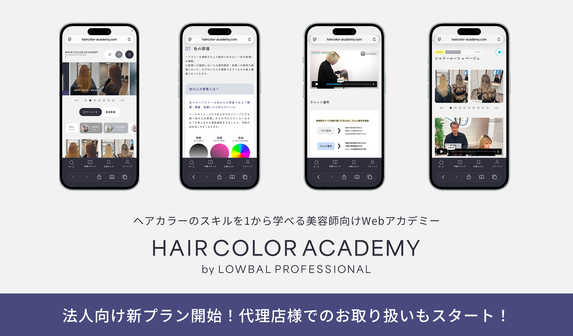 美容室専売製品ブランド「LOWBAL Professional」を展開する株式会社LOWBAL(本社:東京都渋谷区、代表取締役CEO:山崎健吾、以下当社)は、ヘアカラー特化型オンラインスクール「HAIR COLOR ACADEMY」において、サロン単位での導入を支援する「法人プラン」を2026年2月2日(月)よりリリースいたしました 。