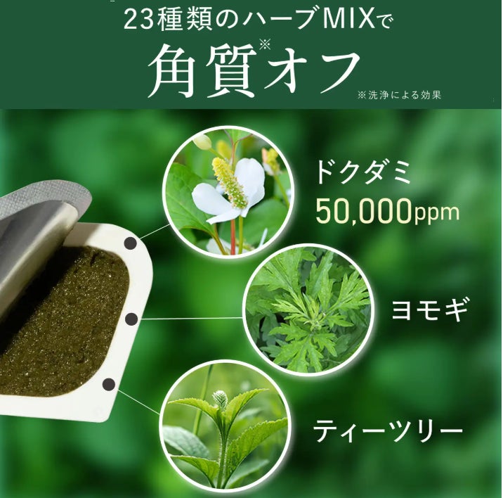 ドクダミやヨモギ、ティーツリーなどを含む複数種のハーブ由来成分が、肌表面の汚れや不要な角質に穏やかにアプローチし、無理に剥がさず、コンディションを整えます。