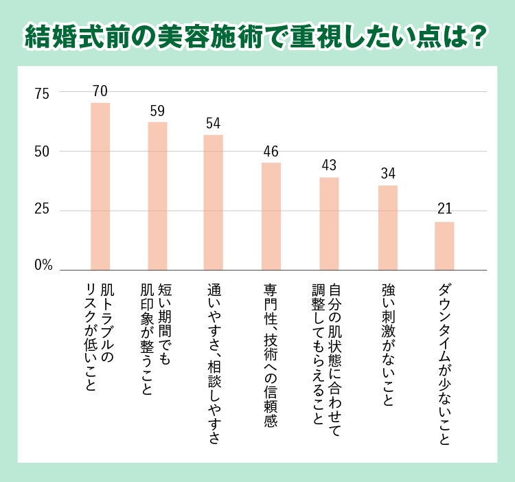 結婚式前の美容施術で重視したい点を尋ねたところ、