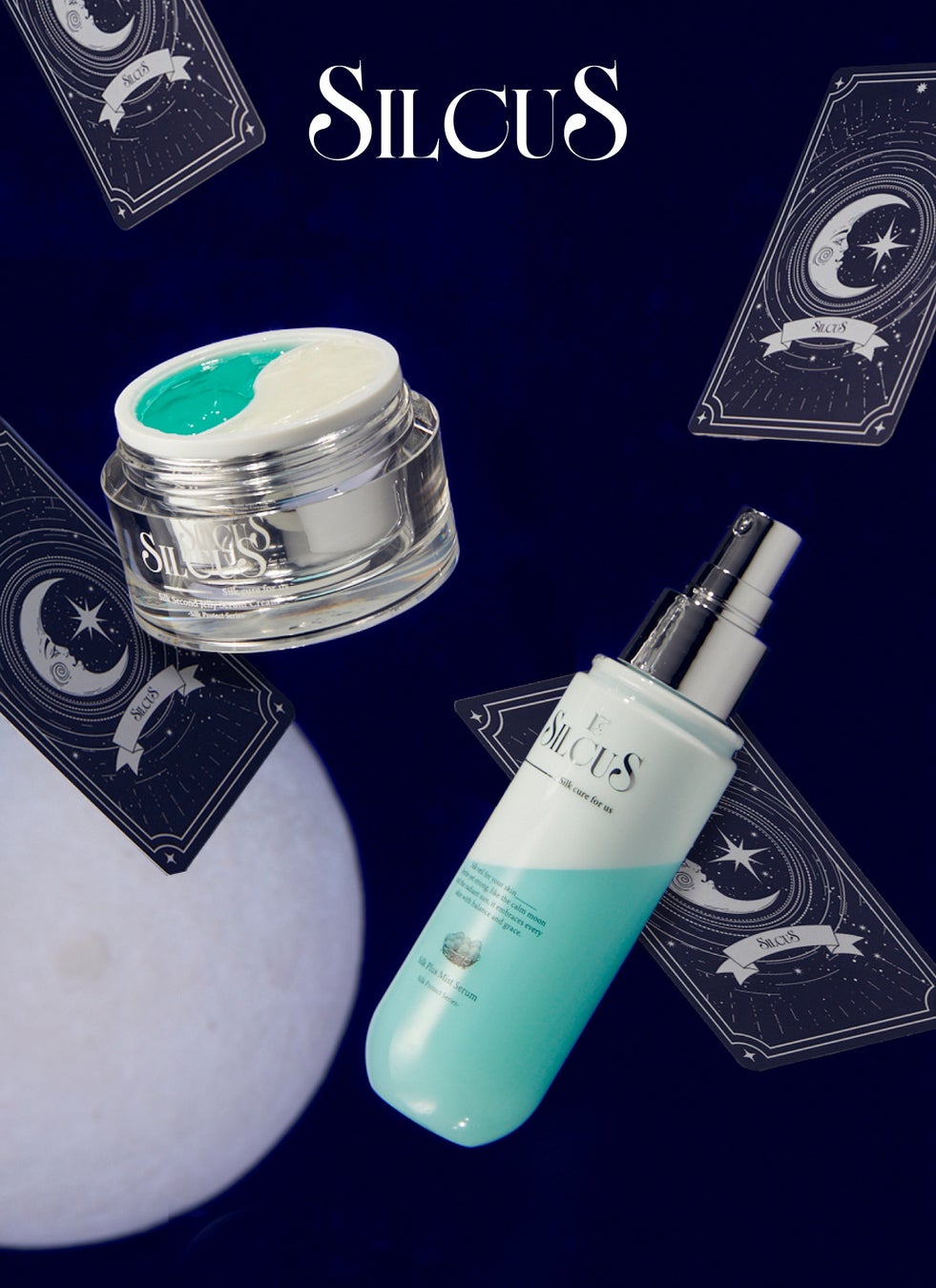 SILCUS(シルキュアス)は、2020年に韓国で誕生した、奄美大島産の上質なシルク成分を使用したスキンケアブランドです。2026年2月 “タロットカード”と“砂時計”をコンセプトに掲げ、「肌にまとうシルクのベール」という新たな世界観のもとリブランディングを実施。ロゴおよびパッケージデザインを一新し、より洗練されたビジュアルへとアップデートしました。全商品に肌にやさしいシルク成分を配合し、「守りのやさしさ」と「攻めの強さ」を兼ね備えたコンセプトを採用。月のような静けさと、太陽のような力強さ。相反する二つのエネルギーを併せ持ちながら、あらゆる肌質に寄り添うスキンケアを提案します。