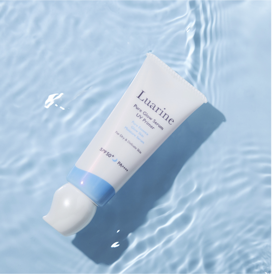 第一弾アイテムは、そうした「Luarine」の思いを体現した透明感の土台をつくる美容液UV下地と肌に溶け込むようになじみヒカリを宿すハイライターがラインナップ。「ルアリン ピュアグロウセラム UVプライマー」は、うるおいのあるツヤを演出しながら、SPF50+、PA++++と国内最高レベルのUVカット率を兼ね備えた美容液UV下地。76.6%の美容液成分(※1)配合でメイクしたてのうるおいとツヤをキープし、光をまとう透明ツヤ肌(※2)を演出してくれます。「ルアリン シーヴェールハイライター」は、粉っぽさがなく肌に溶け込むようにフィットするハイライターで、高輝度パールが上品なツヤと透明感をプラス。素肌そのものが輝くような光沢感を宿し、内側から発光する肌に仕上げてくれます。ナチュラルでありながら内側から発光するような仕上がりで、ピュアで可愛らしい、使う人ひとりひとりの魅力を最大限に引き立てます。