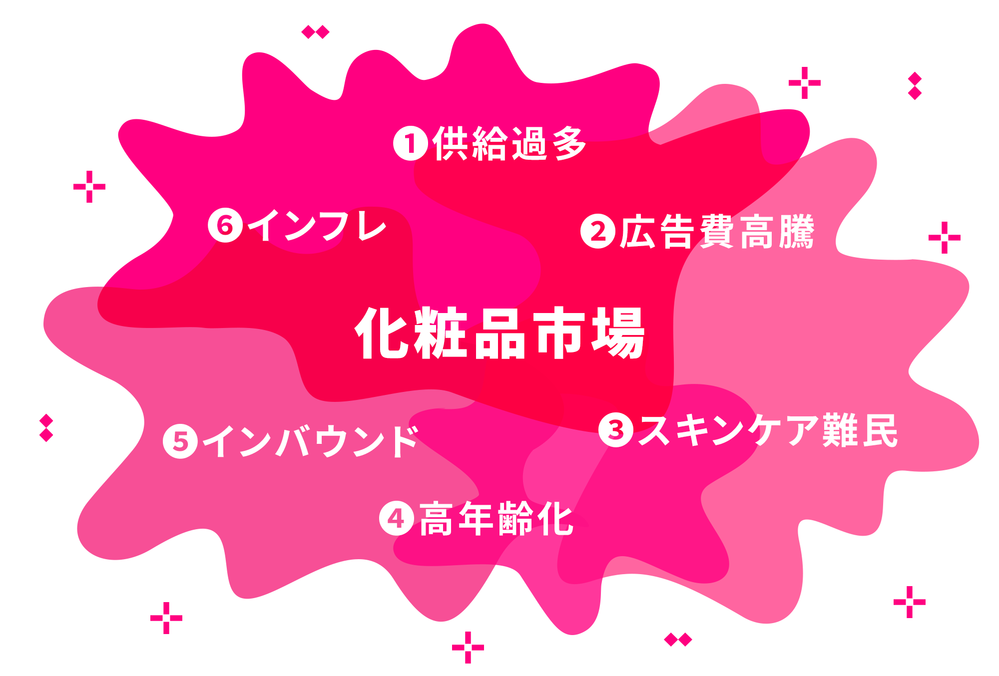 化粧品業界は、OEM工場に製造依頼をすれば販売メーカーになる事が可能で、自社では企画・マーケティングに専念し、製造はOEM工場に任せる分業制が進んでいます。特に近年、SNS発のブランド(D2C)や異業種からの新規参入が増加、そのほとんどが工場なしの形態をとる事で参入障壁が低いことから、化粧品市場の広告入札者は増加し広告費が高騰。インフレによる原価高騰に加え、スキンケア難民が溢れる供給過多の市場では、製品在庫を抱えるリスクが存在しています。