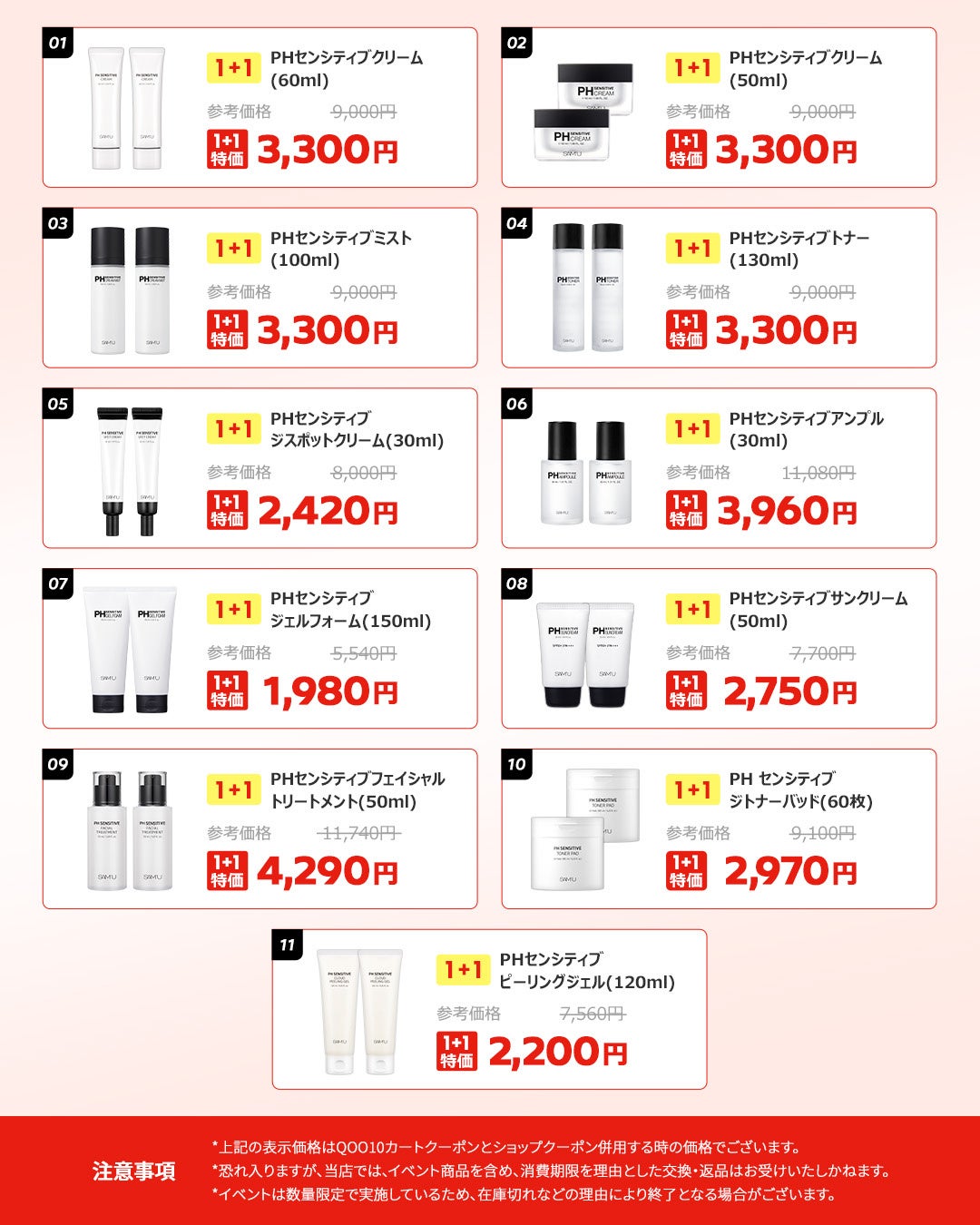 本キャンペーンでは、ブランドの代表アイテムを対象に、本品購入で同一商品がもう1個ついてくる“1+1”イベントを開催。さらに、ガラクトポアラインやPDRNラインでも、ミニPHセンシティブクリームが付く限定セットを展開します。