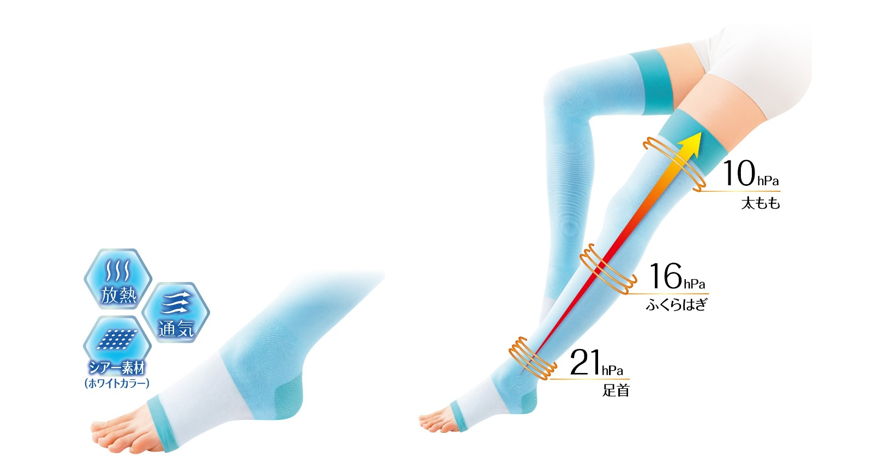(足首21hPa、ふくらはぎ16hPa、太もも10hPa)