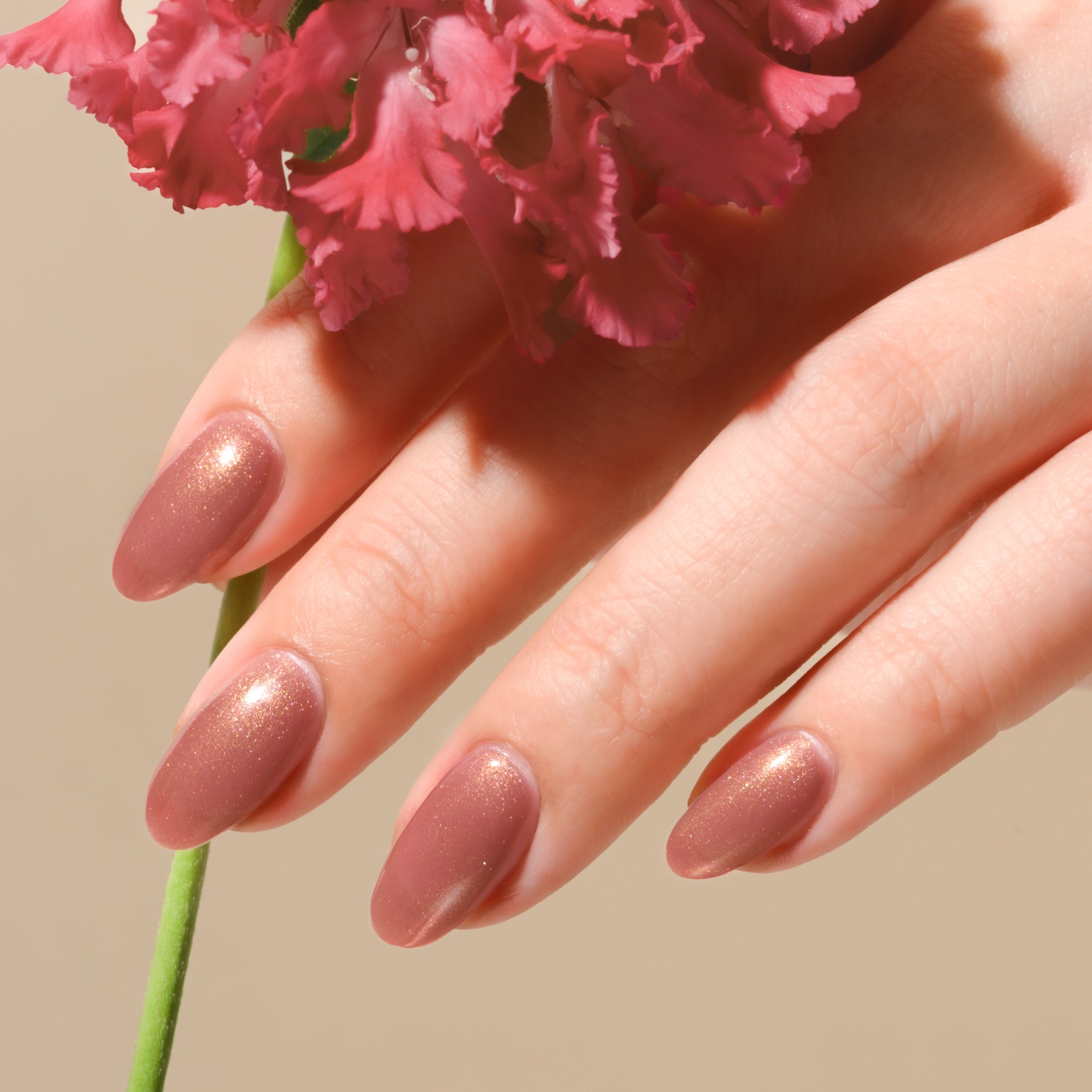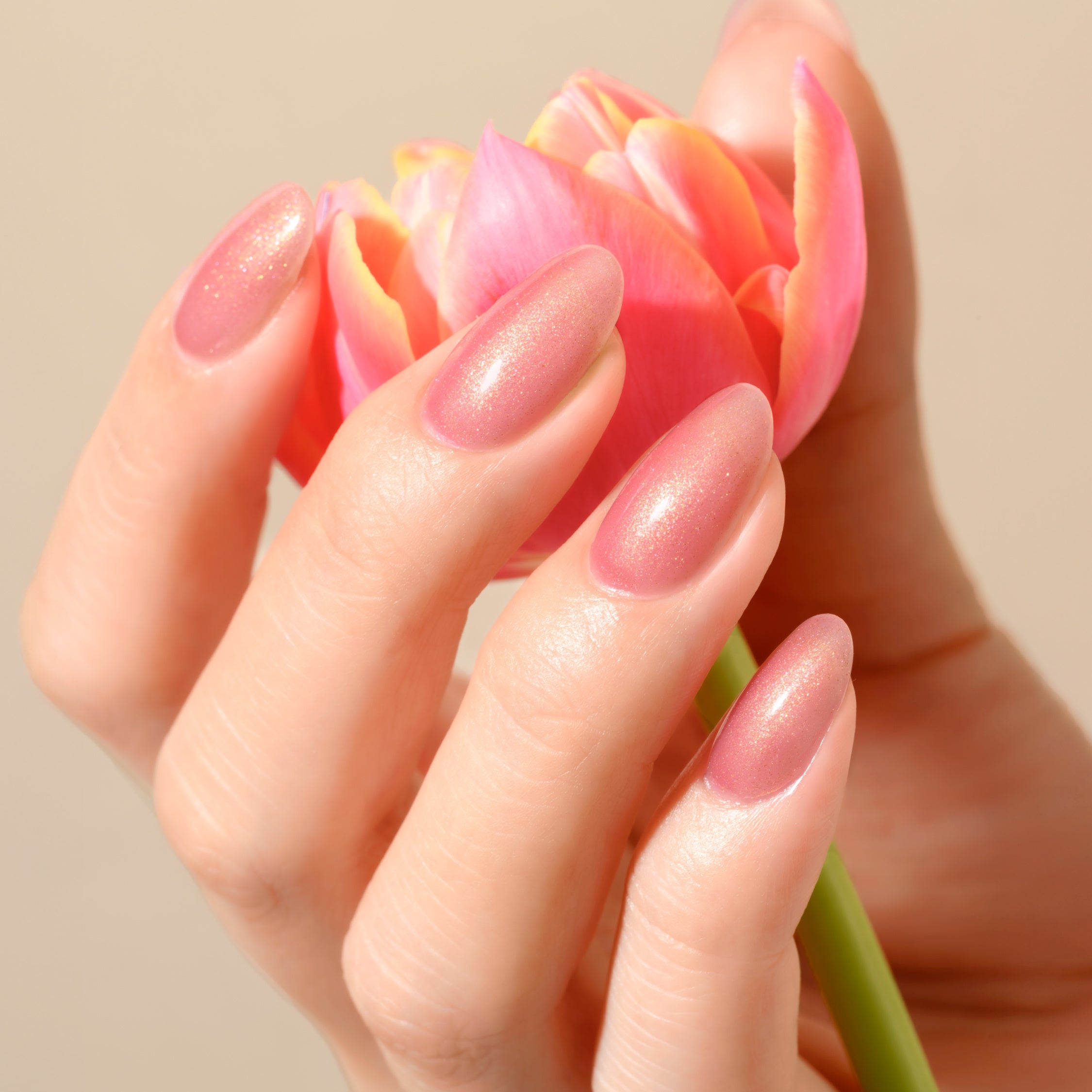 微細な偏光ラメがつややかな愛らしい絶妙ピンク