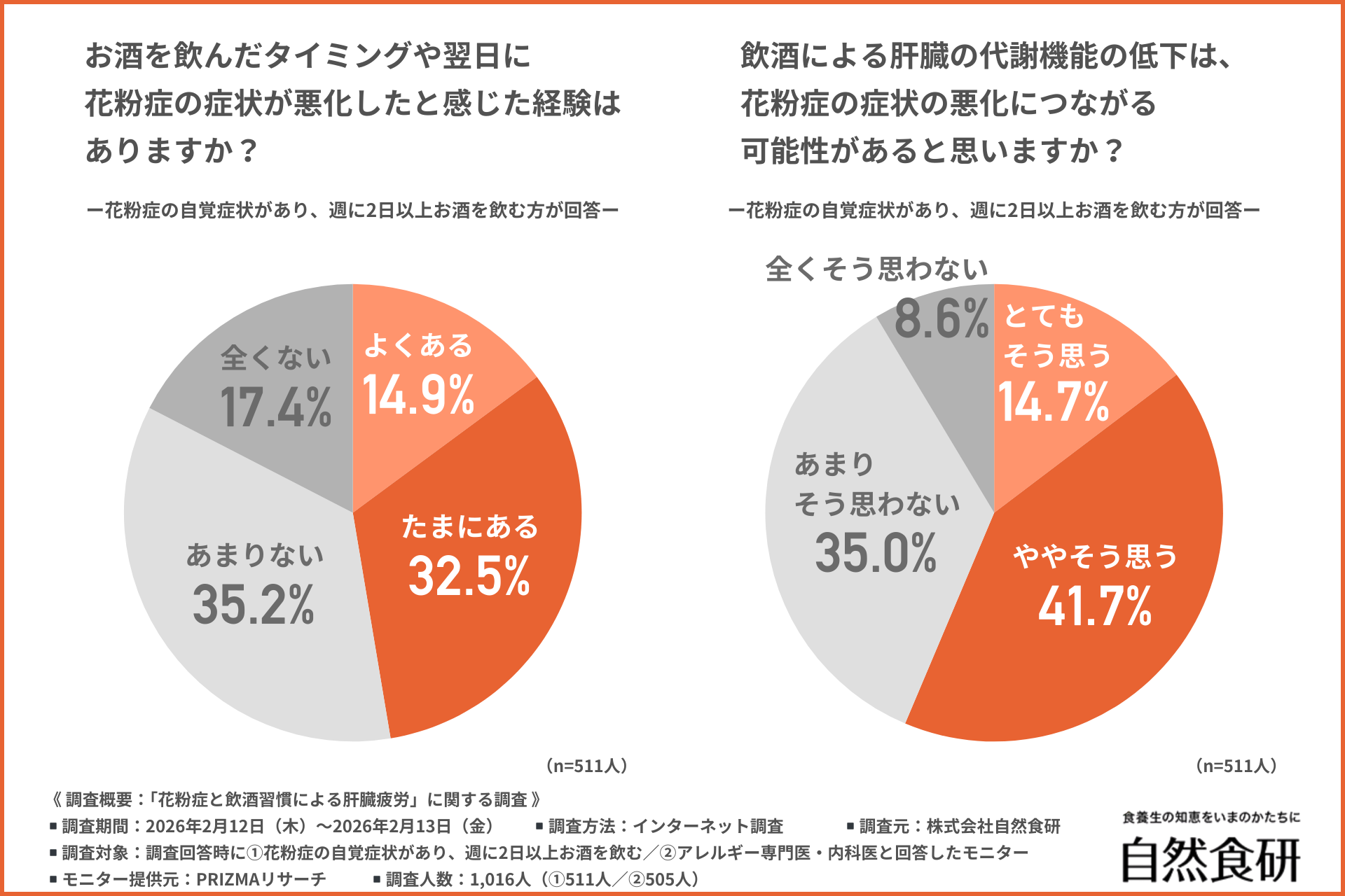 調査概要:「花粉症と飲酒習慣による肝臓疲労」に関する調査