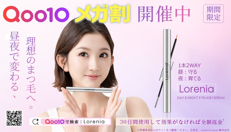 Lorenia Japan 株式会社(本社:東京都台東区、代表取締役:金子 一基)は、2025年11月発売の「Lorenia(ロレニア)まつ毛美容液」が、2026年2月27日(金)から3月11日(水) にかけて、日本最大級のショッピングイベント「Qoo10 メガ割」へ参加することをお知らせいたします。