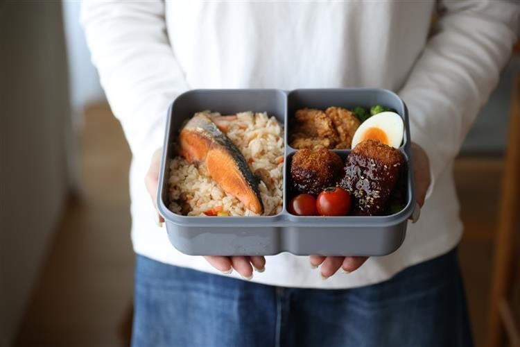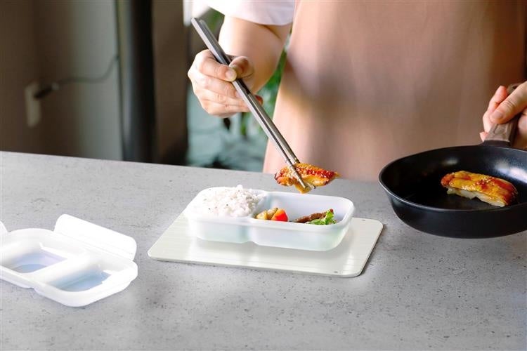 残りにくい、洗いやすさにこだわったお弁当箱。斜めの仕切りはご飯の量に合わせてスライド調整可能。