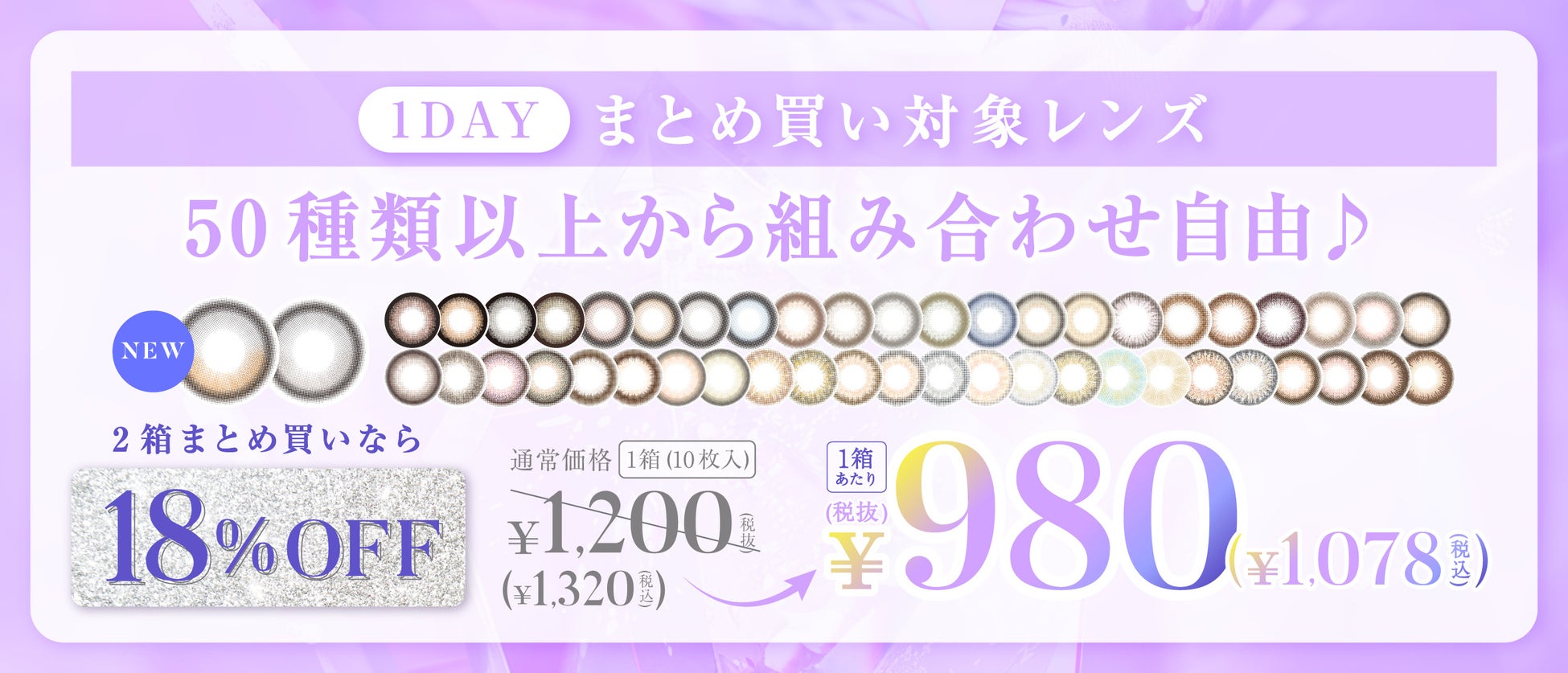 TeAmo 1DAYでは、シーンに合わせて使い分けできる新色含む全54種類のレンズをご用意しております。