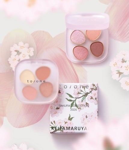 ナチュラルコスメ・オーガニックに関心の高い層から熱い支持を受ける、トータルビューティーブランド「to/one(トーン)」と、デザイナー丸山敬太による、日本を代表する老舗ファッションブランド「KEITA MARUYAMA(ケイタ マルヤマ)」。今回3月4日(水)から10日(火)までの期間、阪急うめだ本店 8階 コトコトステージ81にて、この2ブランドのコラボレーション「SAKURA COLLECTION 2026」の先行販売イベントを開催します。今回3回目となるコラボレーションでは、闇空をやわらかく染め上げる“夜の桜”の幻想的な美しさがテーマ。楚々とした桜に軽やかな色香を滲ませ、まぶたを上げた瞬間に広がる夜桜の景色を写す特別なパッケージとともに、カラーメイク、ベースメイク、スキンケア、フレグランスがラインアップします。さらに、コレクションに触れながら“きれい”を楽しめる体験や、スペシャルな特典もご用意します。