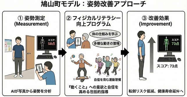 3ヶ月間・月1回の介入により、参加高齢者の64.1%に姿勢改善が確認され、満足度95%、自宅実践率+実践意欲97%を達成。本リリースでは、その成果と全国展開に向けた計画をご報告いたします。