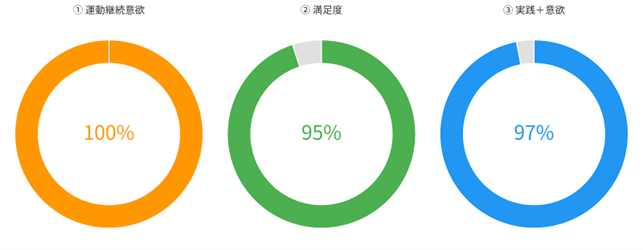 満足度:95% 自宅実践率+実践意欲:97%