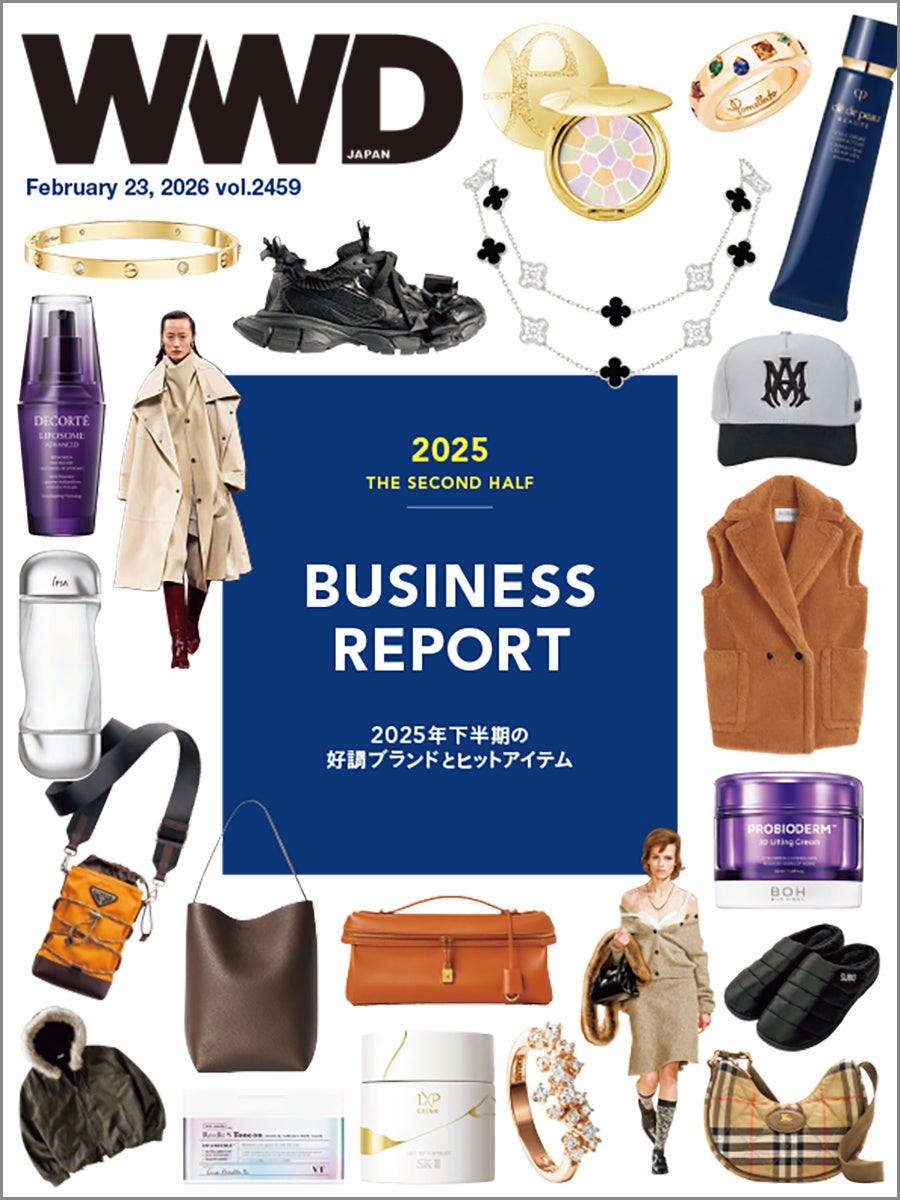 また今週号は定期購読者の付録として、2025年下半期の好調ブランドとヒットアイテムを網羅した「ビジネスリポート」を同封しています。百貨店のラグジュアリー売り場における伸長率ランキングでは、2年間4回に渡り首位を爆走していた「ミュウミュウ(MIU MIU)」がついに陥落。代わりに台頭したブランドはどこなのでしょう?また多くのデザイナー交代による、駆け込み需要や、新デザイナーに対するご祝儀相場についても触れています。ジュエリーでは、金相場の高騰で王道のアイコン人気が継続しています。となると好調だったブランドは……!?ビューティでは、国内顧客への商品提案を進めてきたブランドが伸びています。一位は、最高峰ラインに次いで、アンダー1万円のエントリーアイテム的なCCクリームを発売した、あのブランド!詳しくは紙面をご確認ください。