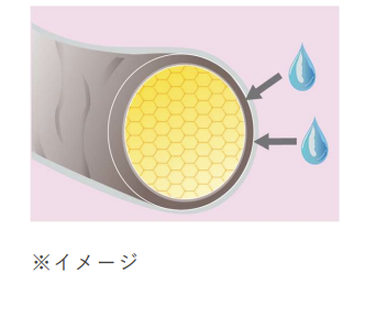 浸透:髪になじませた瞬間に液状の浸透美容液成分がとろけ出し、髪の芯まですばやく浸透。髪全体をうるおいで満たし、パサつきの原因となる乾燥ダメージを補修します。
