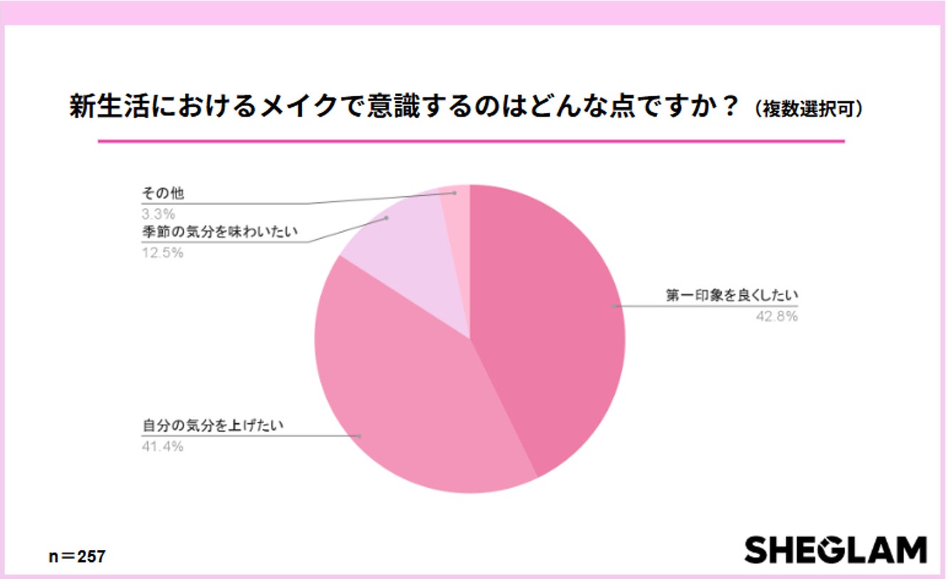 150以上の国と地域で展開するグローバルコスメブランド「SHEGLAM」は、10〜30代の女性300人を対象に、「新生活に向けたメイクの意識調査」を実施しました。