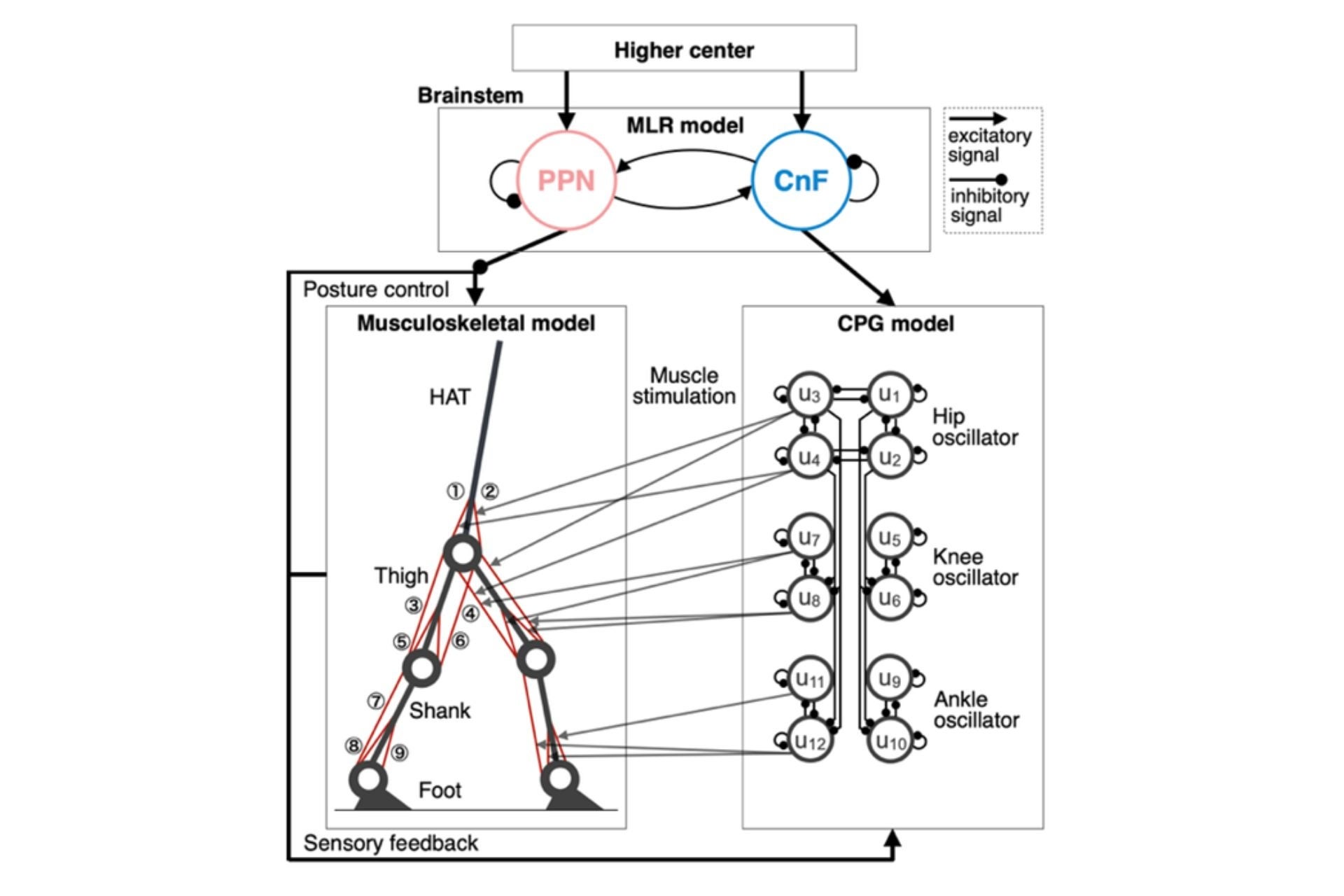 神経・筋・骨格を統合したモデルで歩行障害を再現し、データに基づく個別化介入の有効性をコンピュータシミュレーションで予測します。(Ichimura D, Sawada M, et al., J Neuroeng Rehabil. 2025; doi:10.1186/s12984-025-01596-x)