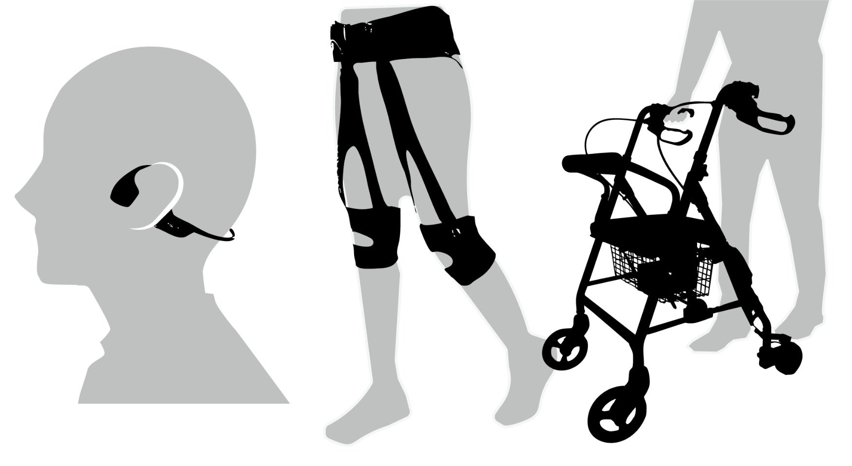 • 歩行障害緩和サービス:アシストスーツや音・音楽を用いて個別化された歩行サポート。