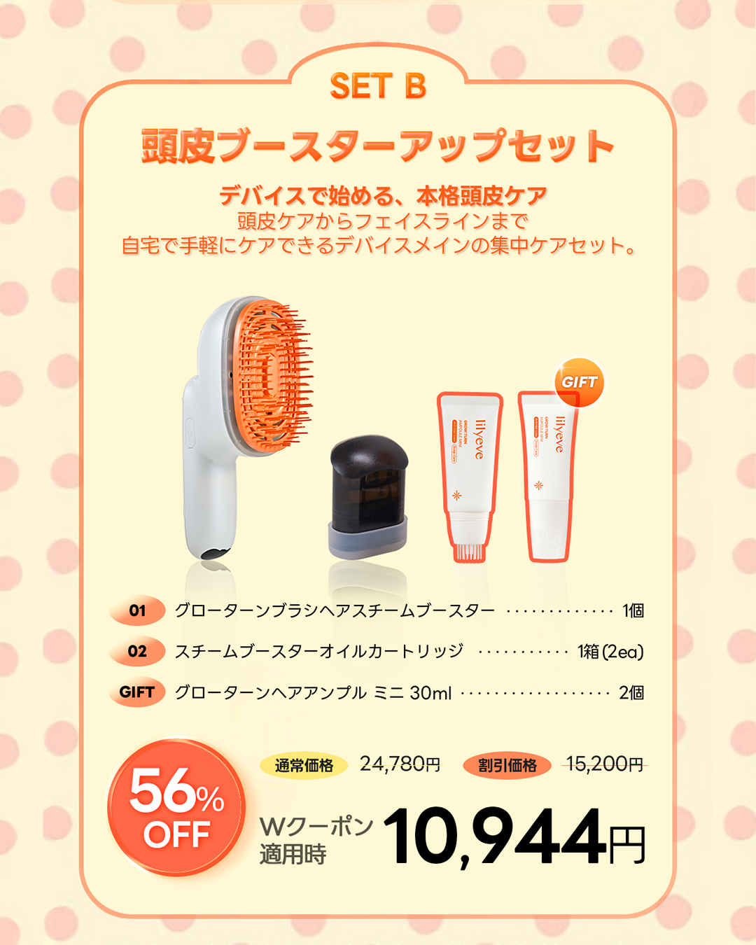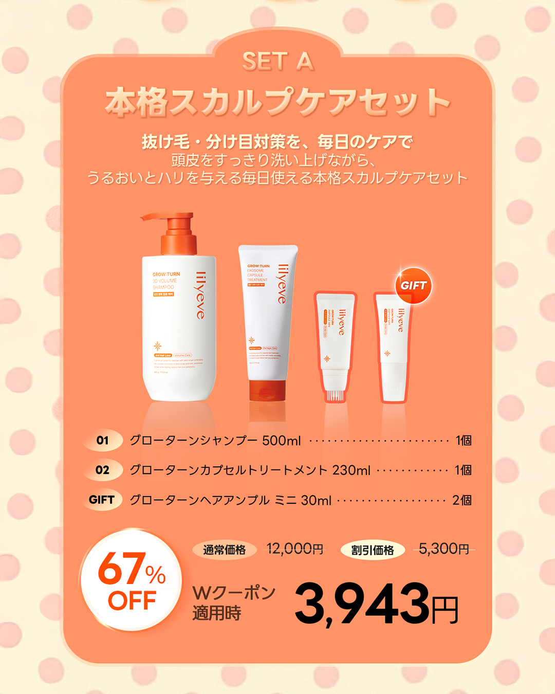 さらに今回のインフルエンサー・スイカとのコラボでは、持ち運びに便利な「グローターンエクソソームミニアンプル」が付いてくる初の特別セットをご用意しました。外出先でも手軽に頭皮ケアができる仕様となっています。