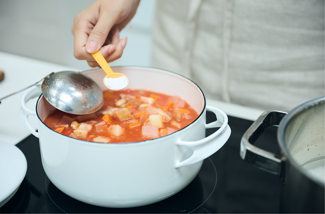 最大の特徴は、加熱調理可能な設計により「普段の食事に混ぜるだけ」で味を損なわず栄養を補える点。好き嫌いや飲み忘れを気にせず、毎日の習慣に無理なく取り入れられます。手作り料理を通じて、子どもの可能性を最大化する日常をサポートします。