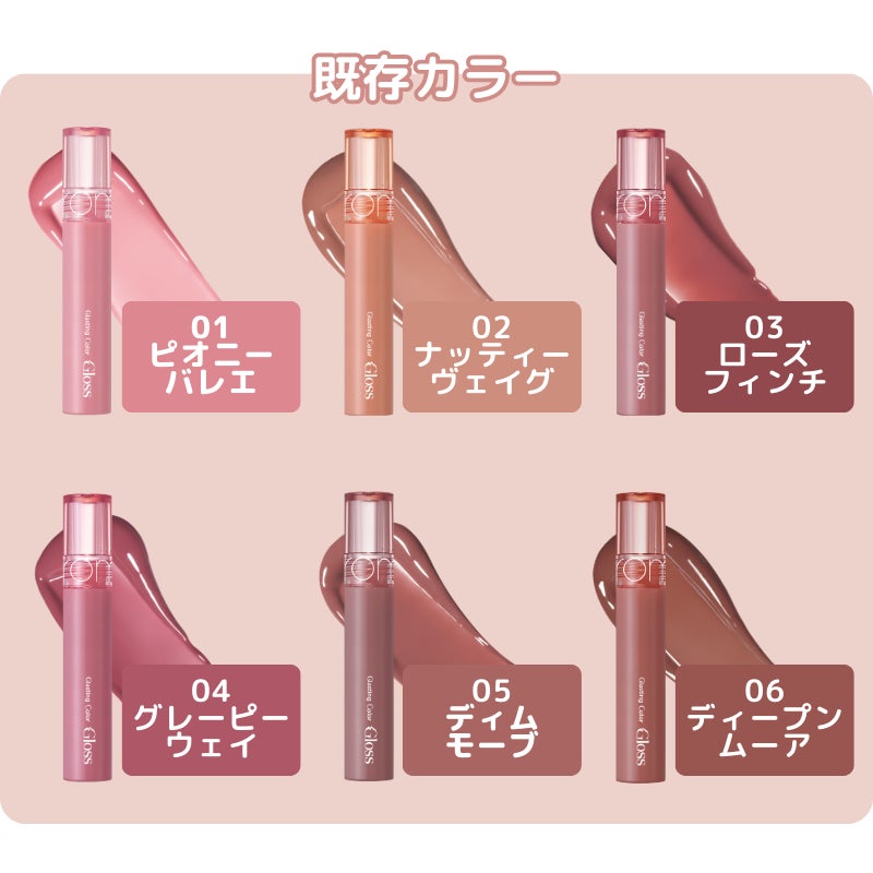「グラスティングカラーグロス ヌードライン」。韓国では全6色展開となる本シリーズのうち、