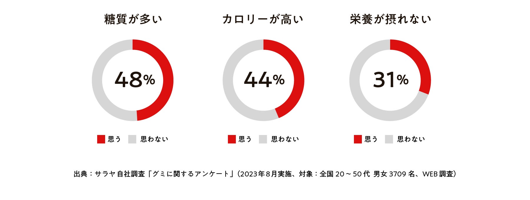年々拡大するグミ市場ですが、一般的なグミは砂糖や水飴をベースに作られているため、従来のグミに対して「糖質、カロリーが高い」といった不満※2も見えてきました。