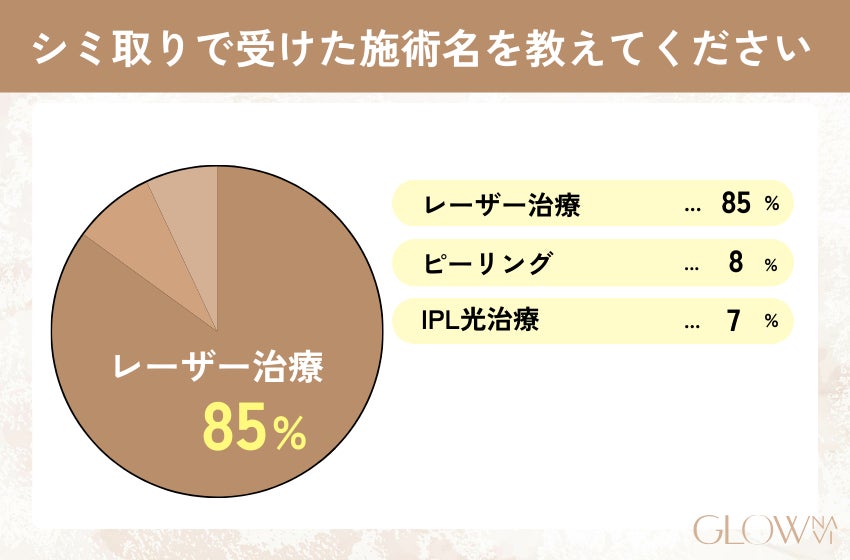 メンズシミ取りの施術はレーザー治療が85%と最多(ピーリング8%、IPL光治療7%)