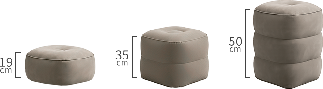 19cm・35cm・50cmの3段階調整が可能です。シーンや好みに合わせて簡単に高さを調整することができるため、いかなる場面でも足の置き場に迷うことがなく、いつでも快適な足元を実現します。