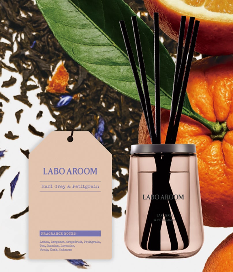 アールグレイの心地よさとプチグレン精油が調和する、上品で落ち着いた香り。