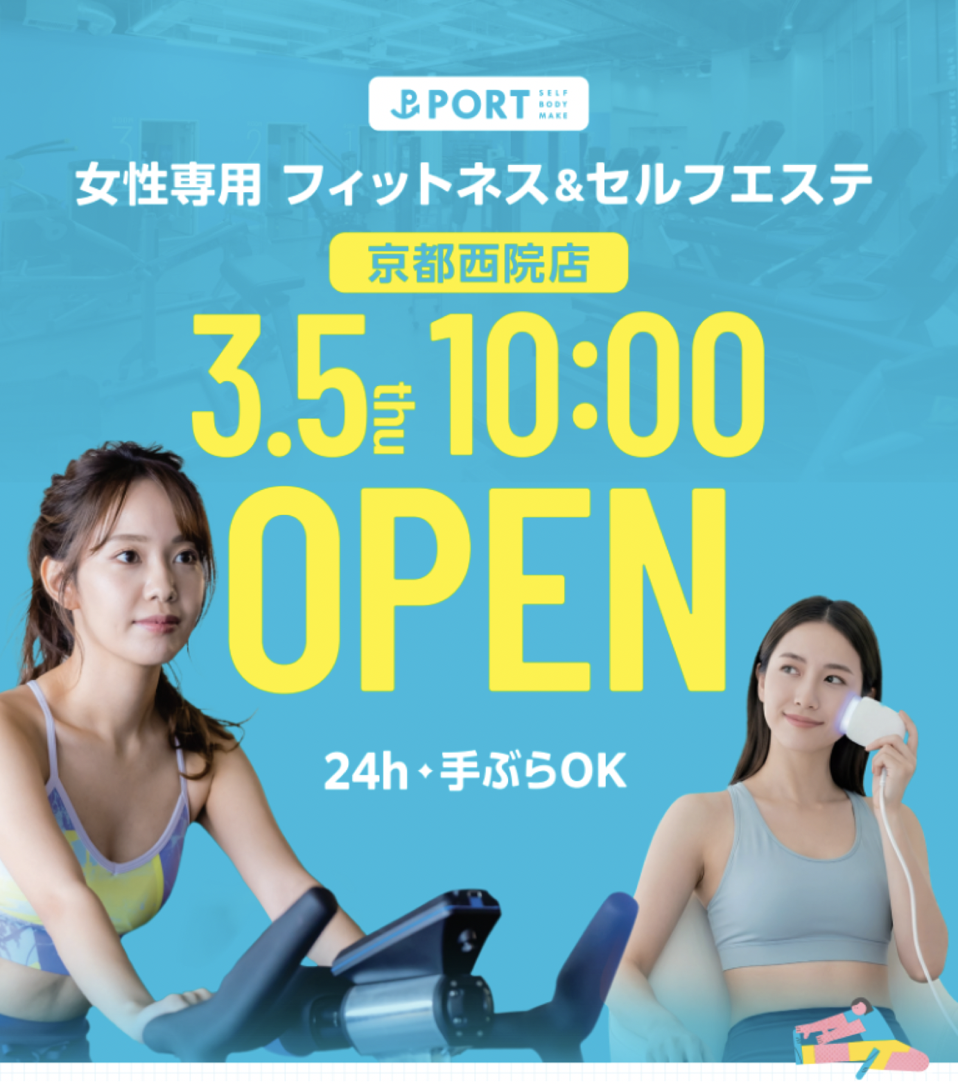 “使った分だけ払う”新発想のフィットネス「PORT」エステマシンも充実!女性専用24時間!京都・西院に3月5日グランドオープンキャンペーン実施中!