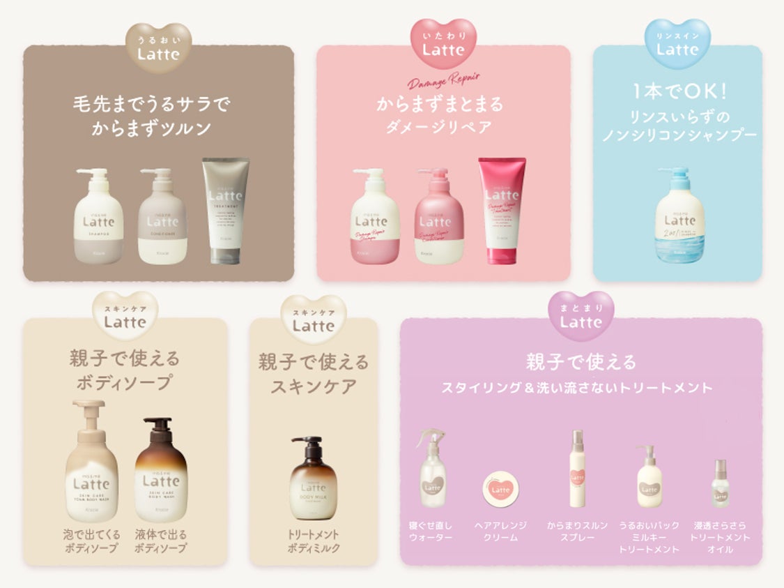 “わたしにも、こどもにも、うれしい。”がコンセプトの、子どもと一緒に使える「mä&më Latte(マー&ミー ラッテ)」は、ヘアケアやスキンケアの商品を通じて、かけがえのない親子の時間をより豊かにすることを目指しています。