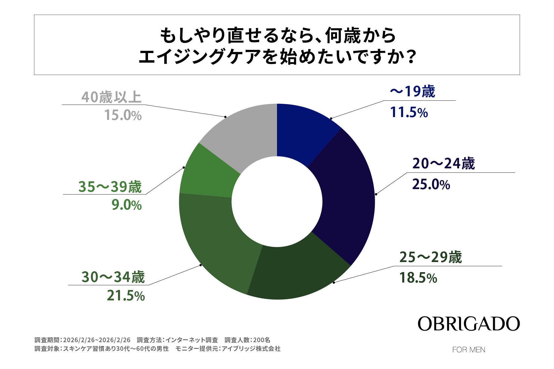 株式会社ビエスト化粧品(本社:大阪府大阪市、代表取締役:國澤 和人)が展開するメンズスキンケアブランド「OBRIGADO(オブリガード)」は、全国の30代〜50代男性200名を対象に、エイジングケアに関する意識調査を実施しました。