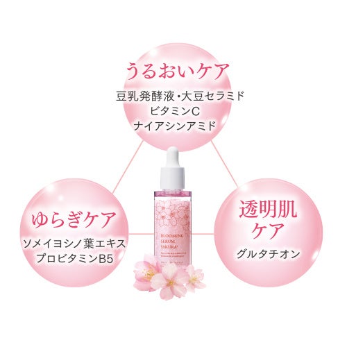 この強い生命力と美しさに着目して生まれたのが美容液『ブルーミングセラムさくら』です。