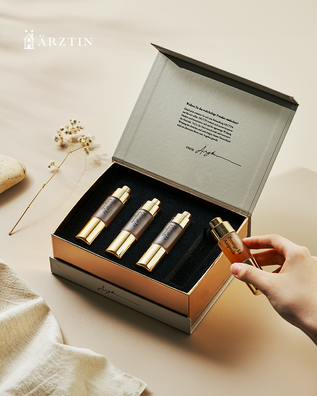 ブランド名である「Ärztin」とは、ドイツ語で女医を意味し、医師をはじめとする「皮膚科学の研究者」が、ドイツの厳選した成分で一人一人に合った様々なお肌の悩みを解決するスキンケア商品を日々研究していることからブランドネームへと込められた思いです。韓国美容皮膚科発祥のハイエンドメディカルスキンケアブランドで、安心して使えるお肌によいスキンケア製品を届けるために2013年8月に設立。2017年に日本市場に参入し、現在はエルツティン公式サイトをはじめとし、楽天やAmazon、Qoo10などのオンラインモール、また新宿伊勢丹の店舗にてみなさんをお待ちしております。​